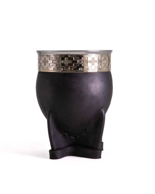 Mate imperial Calabaza Combinado, forrado en cuero con base reforzada de 4 patas, virola de acero y brazalete de Alpaca cincelada.